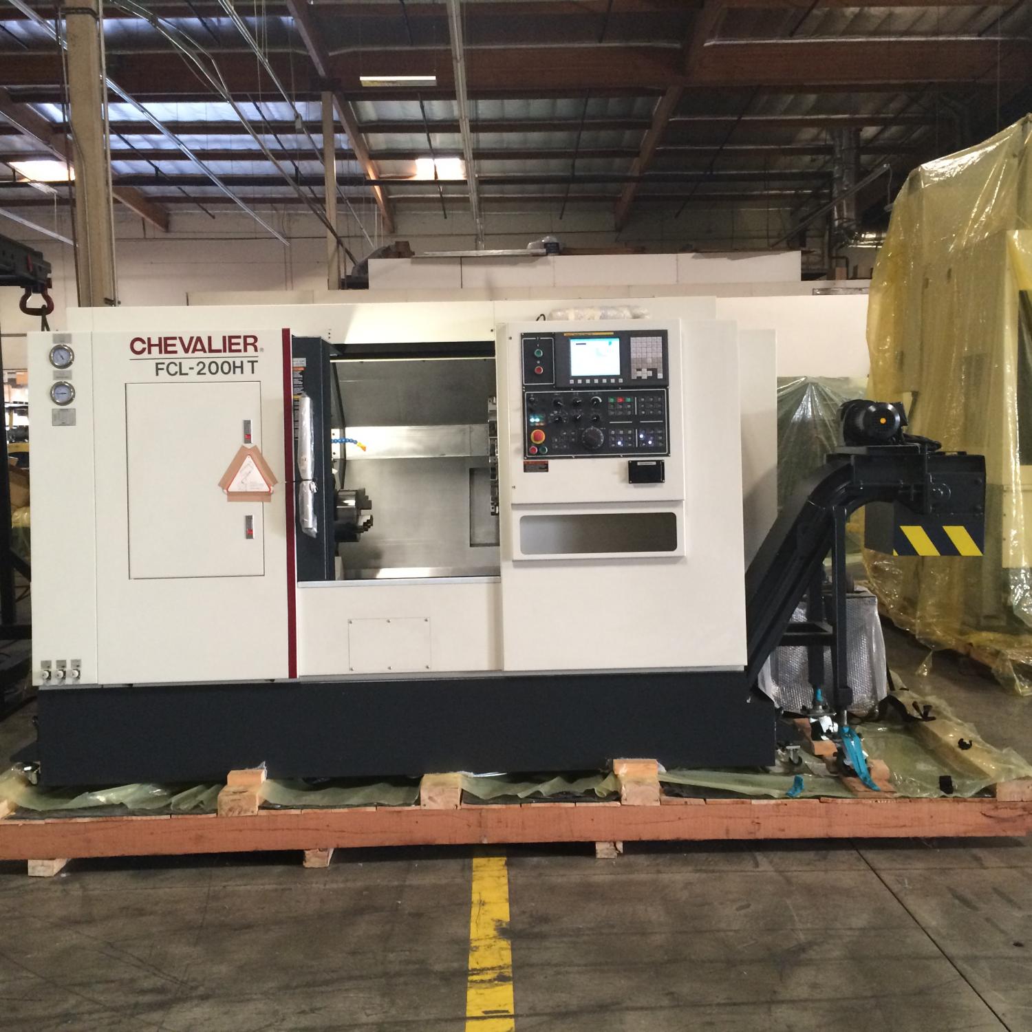 The 45 degree slant bed with fast linear roller ways structure, the FCL-200 equipped with A2-6 spindle nose, 8” hydraulic chuck, and 12-station servo indexing turret with 1” OD shank. The spindle has a 2.0” bar capacity, 20 HP AC digital spindle motor, 3,500 rpm spindle speed. The standard equipment comes with manual tailstock, tool presetter, conveyor, and more.