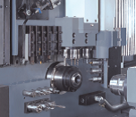 Main Gang Slide has standard 3 fully programmable B-axis live tools, can work on main or sub spindle- additional 3 tools available.